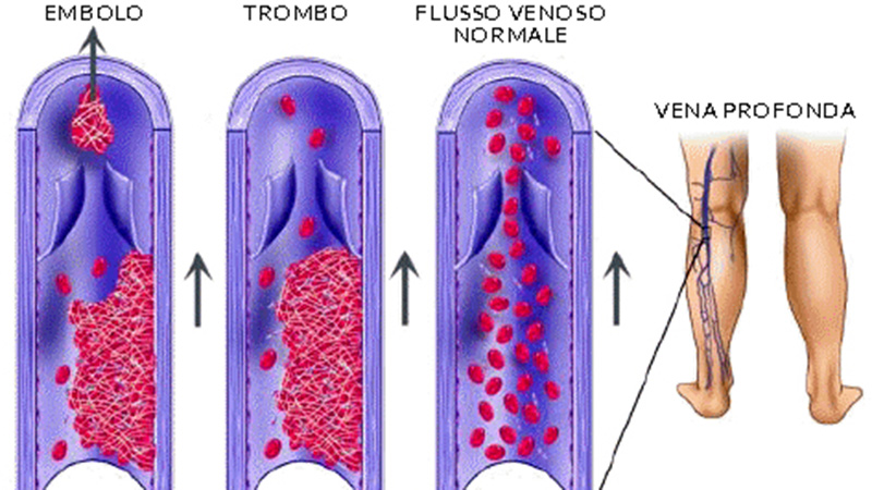 Le trombosi delle vene sono causate dalla coagulazione del sangue che scorre al loro interno. Questo causa problemi di circolazione venosa, con gonfiore e dolore, ma soprattutto puo’ determinare una grave complicanza: l’Embolia Polmonare.