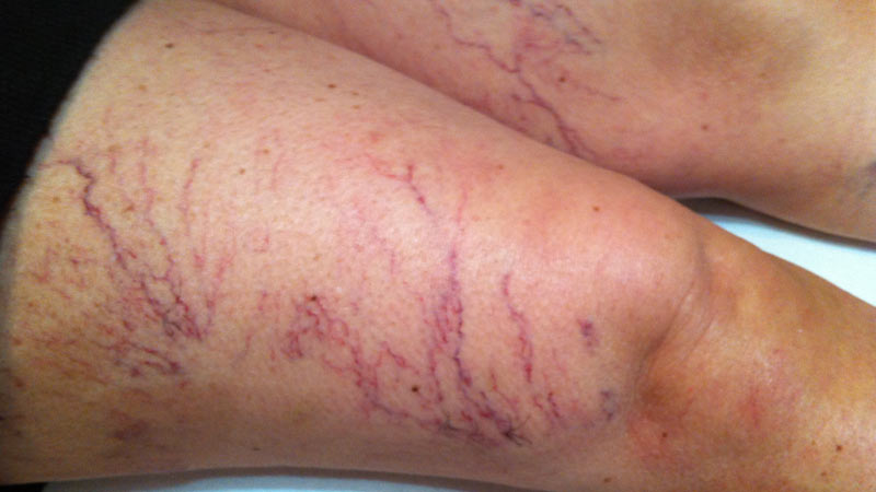 Spider veins are similar to varicose veins, but they are smaller. They are often red or blue and are closer to the surface of the skin than varicose veins. They can look like tree branches or spider webs with their short jagged lines. Spider veins can be found on the legs and face. They can cover either a very small or very large area of skin.
